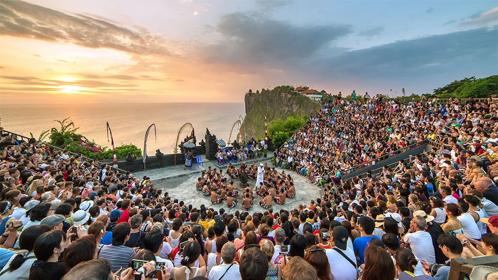 The Kecak Fire Dance is one of Bali’s most iconic art performances, famous for its dominant use of human vocals in place of gamelan instruments to accompany the dance-drama at its core. Your visit to the island won’t be complete without seeing a show, and the best place to do so is at the cliff-top amphitheatre located just south of the Uluwatu Temple on Bali’s southern Bukit peninsula… and at sunset for added drama.